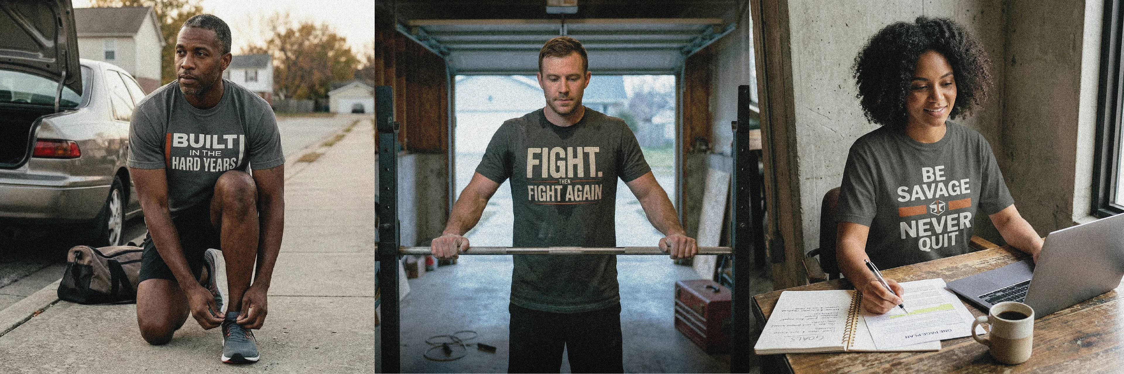 Our apparel is meant to be a daily, no-bullshit reminder to rise and do the work.